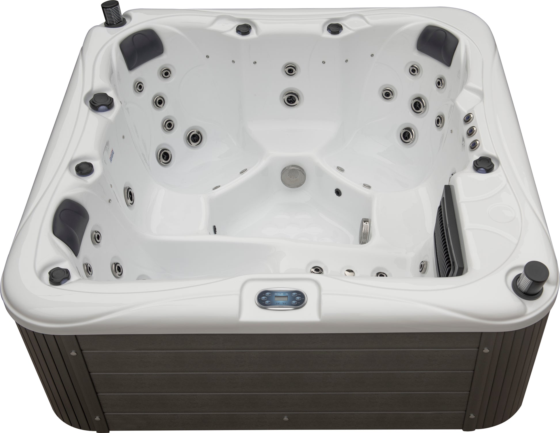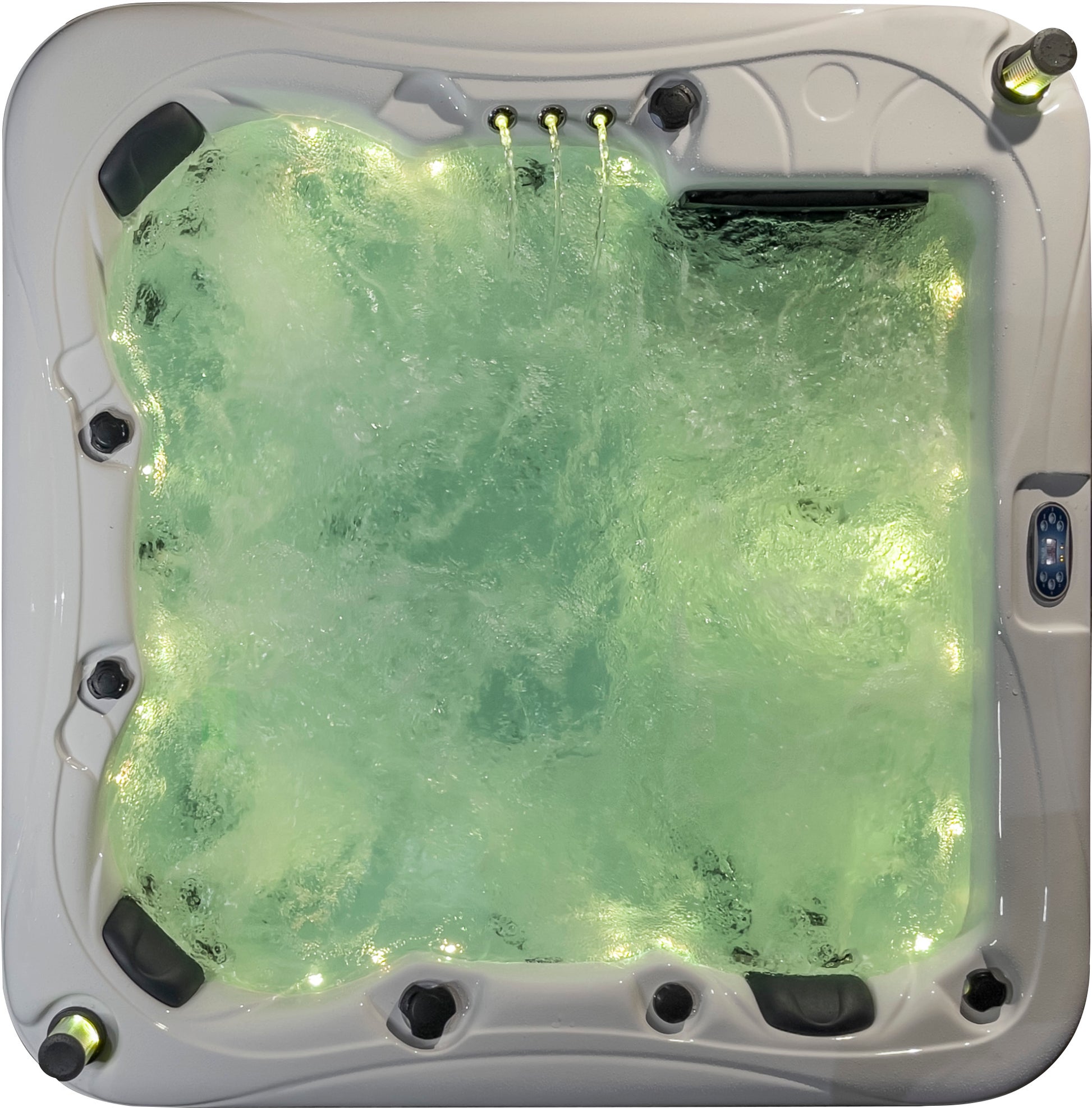 Easy to install with a 15A plug-and-play connection, it also offers stunning ambiance with 1 main light and 20 small LED lights. Full foam insulation, an aluminum-reinforced cabinet and base, a high-quality PU cover, and dual 50sqft filtration cartridges guarantee energy efficiency, durability, and crystal-clear water.