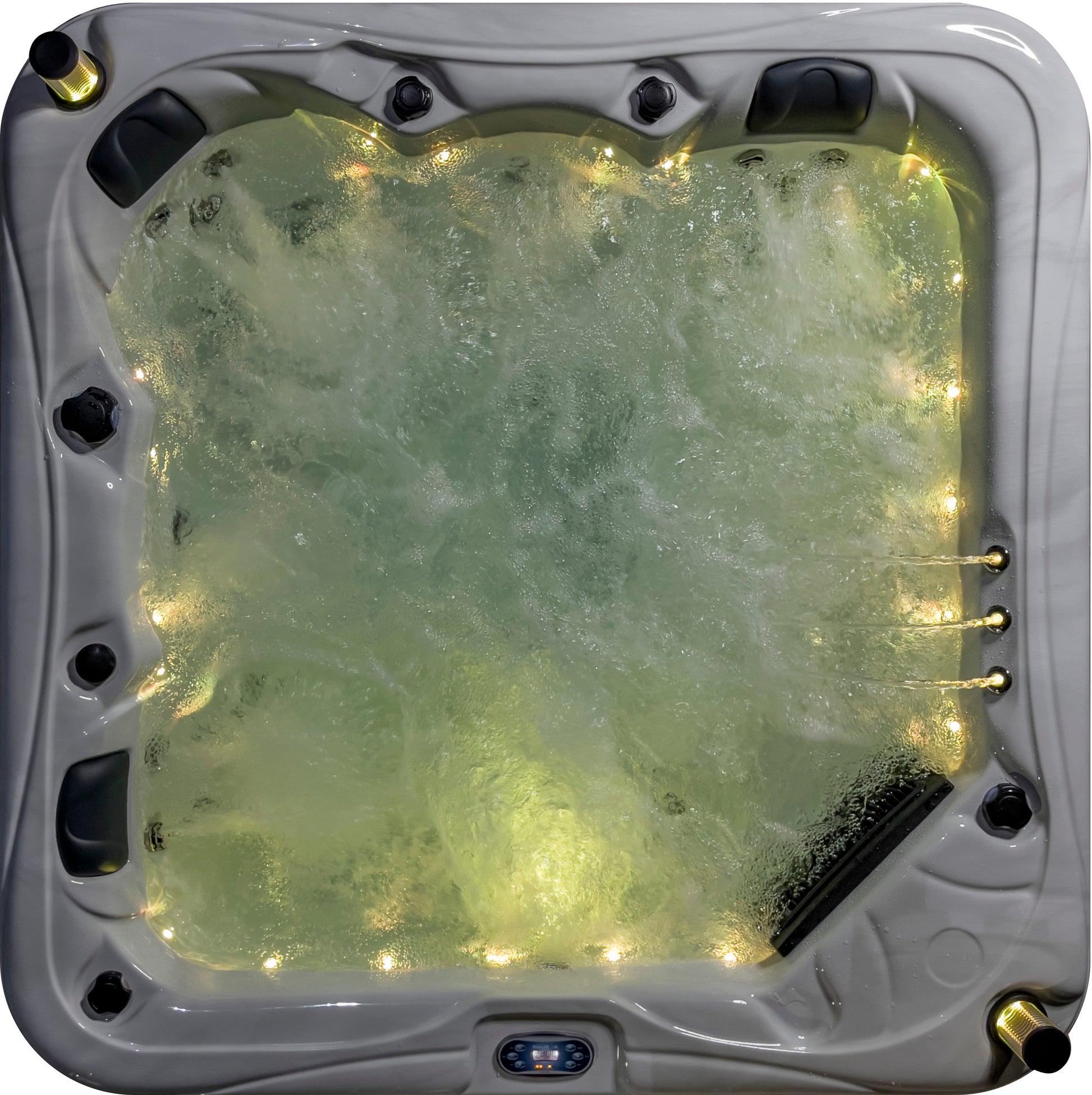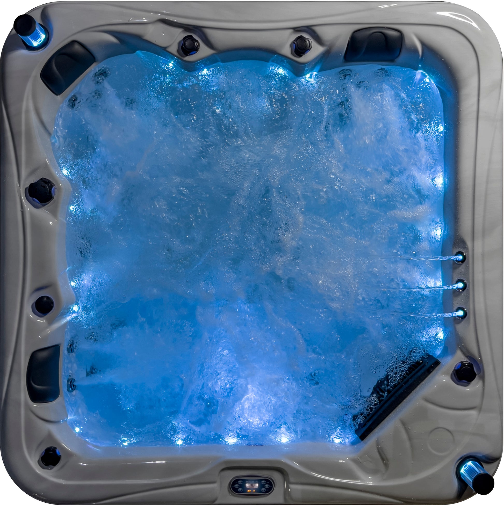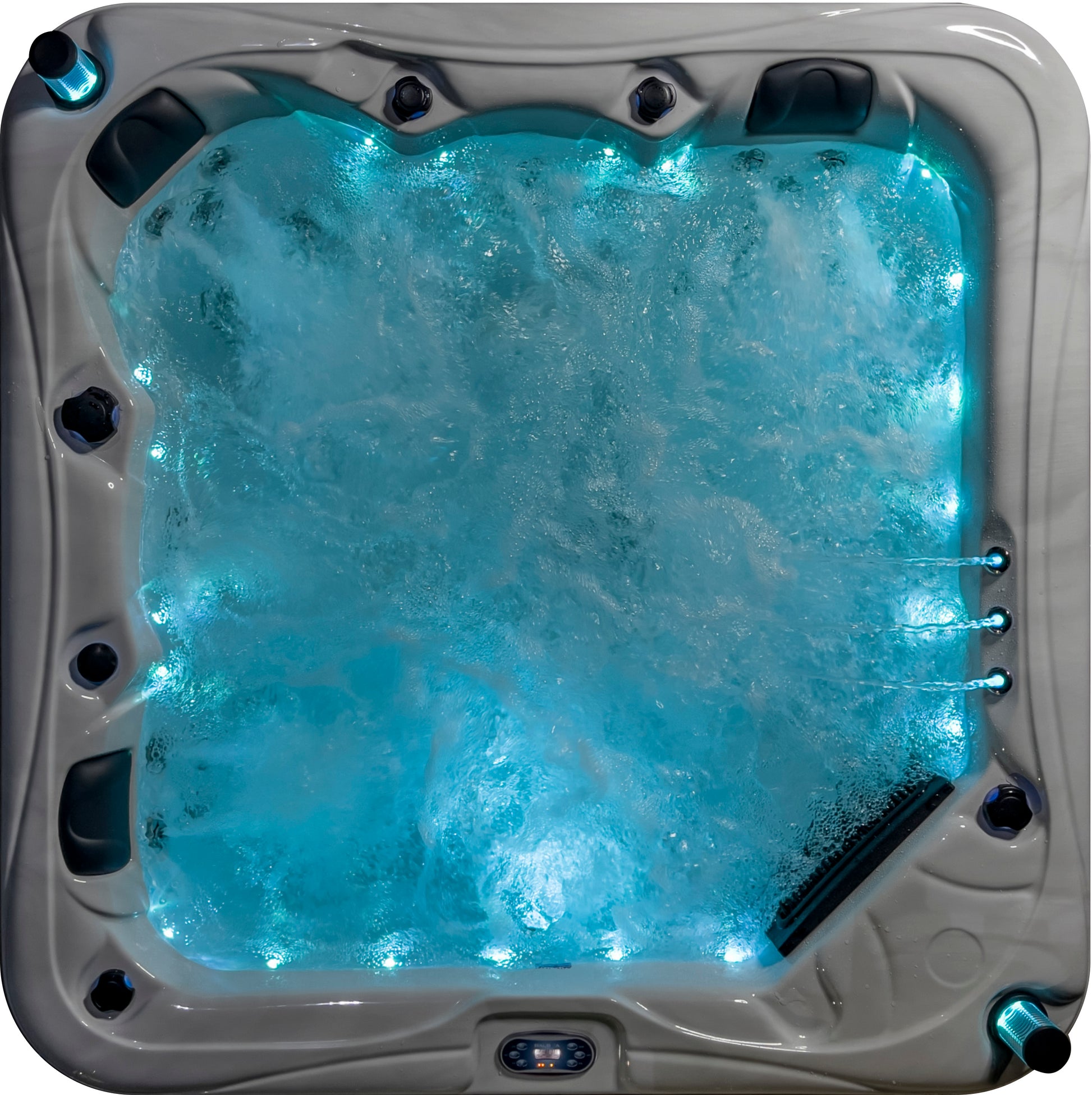 Easy to install with a 15A plug-and-play connection, it also offers stunning ambiance with 1 main light and 20 small LED lights. Full foam insulation, an aluminum-reinforced cabinet and base, a high-quality PU cover, and dual 50sqft filtration cartridges guarantee energy efficiency, durability, and crystal-clear water.