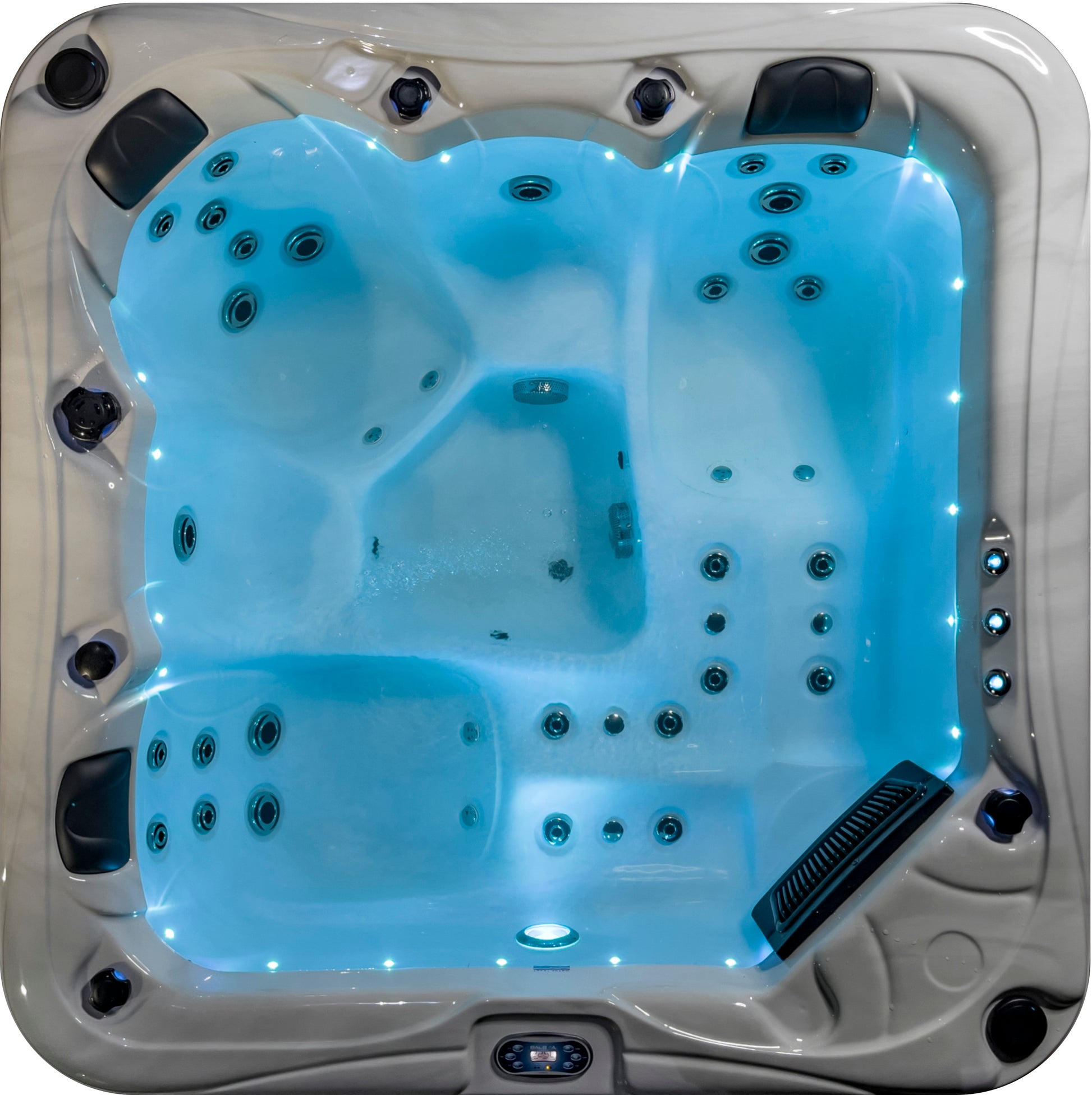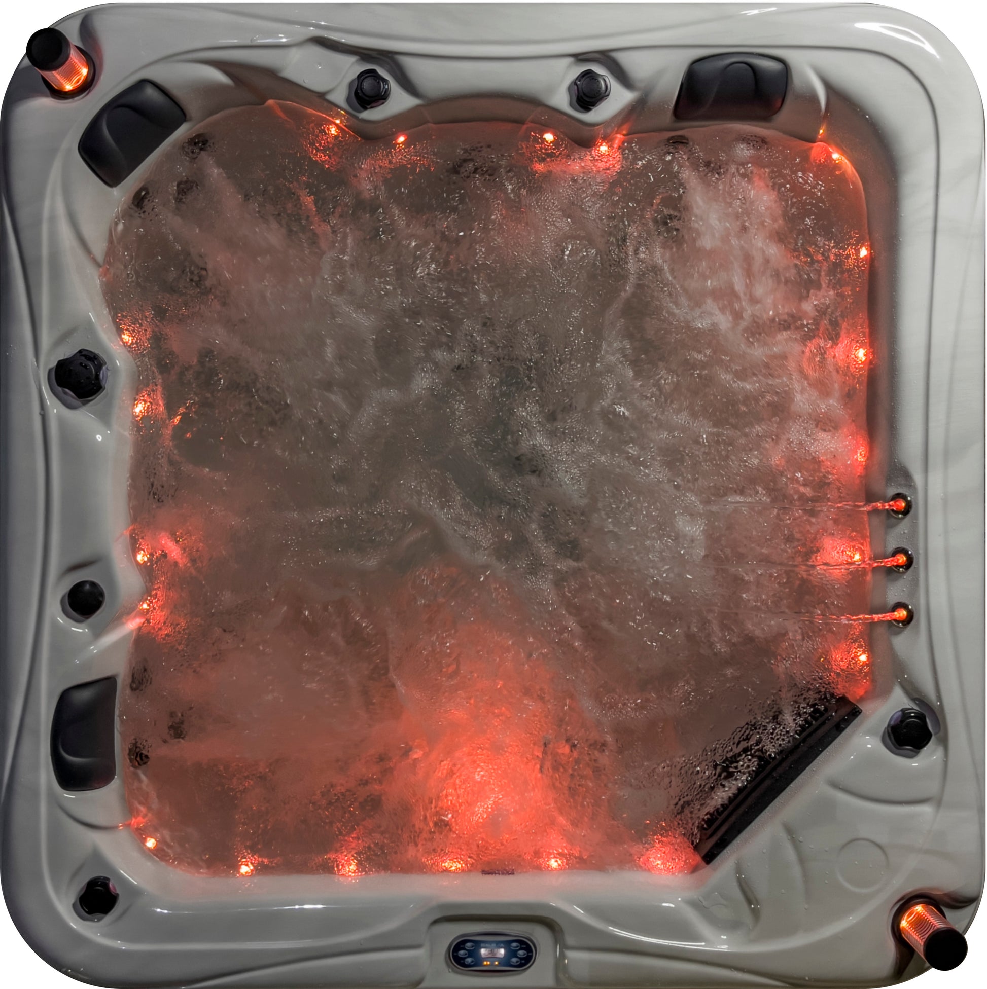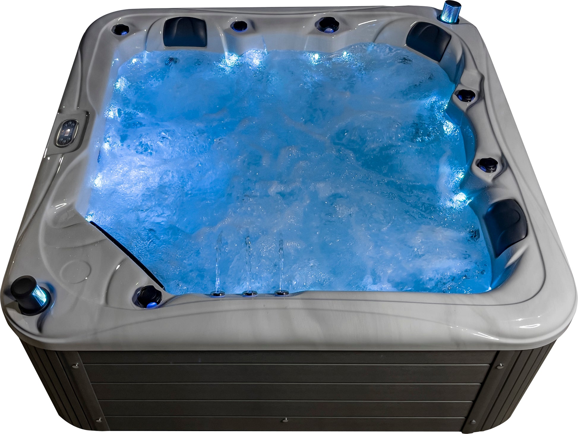 Easy to install with a 15A plug-and-play connection, it also offers stunning ambiance with 1 main light and 20 small LED lights. Full foam insulation, an aluminum-reinforced cabinet and base, a high-quality PU cover, and dual 50sqft filtration cartridges guarantee energy efficiency, durability, and crystal-clear water.